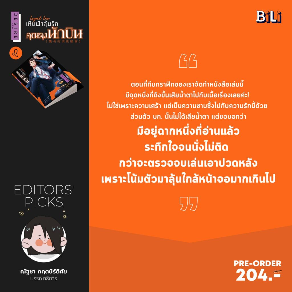 แอบขอกระซิบบอกนักอ่านทุกท่านว่าตอนที่ทีมกราฟิกของเราจัดทำหนังสือเล่มนี้ มีจุดหนึ่งที่ถึงขั้นเสียน้ำตาไปกับเนื้อเรื่องเลยค่ะ! ไม่ใช่เพราะความเศร้า แต่เป็นความซาบซึ้งไปกับความรักนี้ด้วย ส่วนตัว บก. นั้นไม่ได้เสียน้ำตา แต่ขอบอกว่ามีอยู่ฉากหนึ่งที่อ่านแล้วระทึกใจจนนั่งไม่ติด กว่าจะตรวจจบเล่นเอาปวดหลังเพราะโน้มตัวมาลุ้นใกล้หน้าจอมากเกินไป
