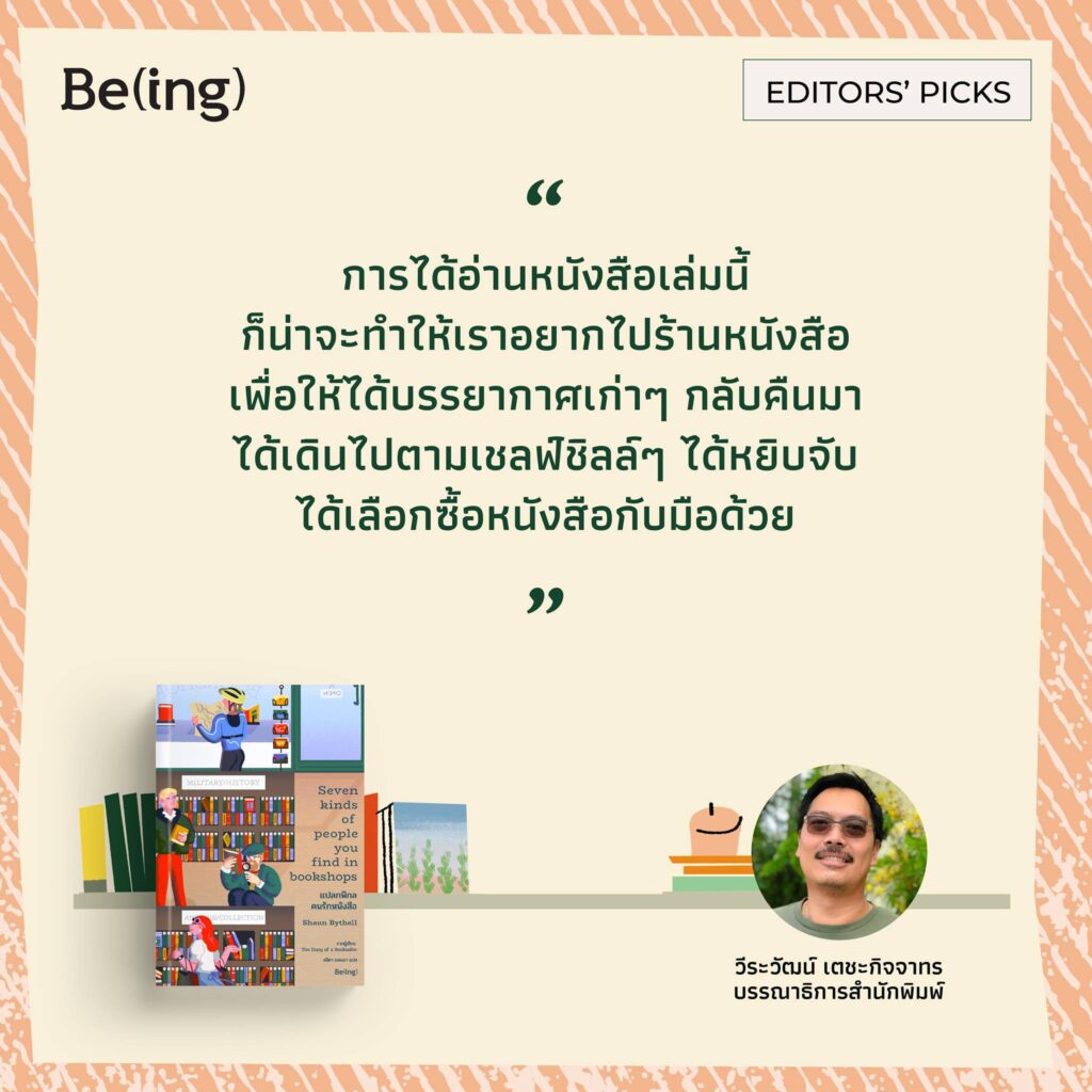เล่มที่อยากแนะนำคู่กัน : เนื่องจากในงาน Biblio Open House 2021 นี้ นอกจากเล่มนี้แล้ว สำนักพิมพ์ Being ยังออกหนังสืออีกเล่มพร้อมกันมาด้วย นั่นคือ “ที่ผ่านมา มนุษย์ไม่เคยไร้หัวใจ” ซึ่งเป็นหนังสือที่ดีมากจริงๆ พูดถึง “ความดีงามที่มีอยู่ในใจมนุษย์” ซึ่งตรงกับโควทจากหนังสือเล่มนี้ที่ผมชอบพอดีเลย จึงอยากจะให้อ่านเล่มนั้นอีกเล่มหนึ่งด้วย