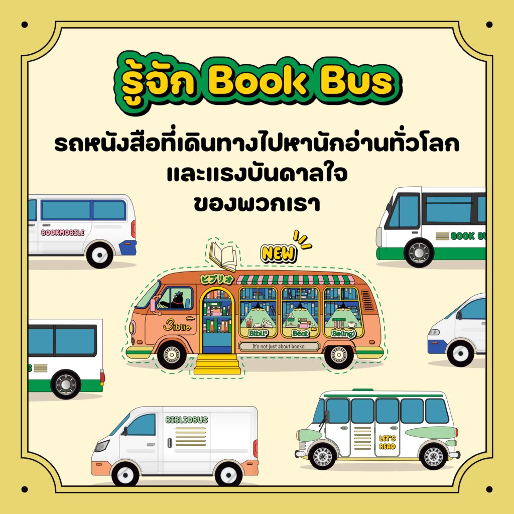 ก่อนเข้าสู่ยุคโซเชียลมีเดีย ตอนที่พวกเรายังไม่สามารถสั่งซื้อหนังสือผ่านเว็บไซต์ หรือเก็บโค้ดผ่านช้อปปี้ ‘รถหนังสือ’ หรือ Bookmobile / Book bus คือ พาหนะทรงคุณค่าที่ขับพาหนังสือและสื่อความบันเทิงมาสู่ผู้คน ล้อที่หมุนวนไปตามทางถนน มาถึงโรงเรียน บ้านเรือน พื้นที่สาธารณะ มีใครต่อใครรอคอยอยู่