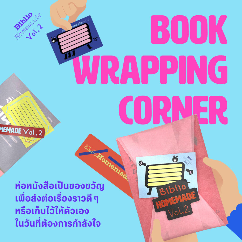จะห่อไว้ส่งต่อให้คนสำคัญหรือห่อไว้ให้ตัวเองในวันที่ต้องการปลอบโยนหัวใจ ไม่ว่าจะเป็นแบบไหน เราเชื่อว่าหนังสือที่ห่อด้วยมือของคุณจะเต็มไปด้วยความหมาย ทีมงาน Biblio เตรียมกระดาษห่อ สติ๊กเกอร์ การ์ด และของตกแต่งน่ารัก ๆ ไว้ให้ครบ มาเปลี่ยนหนังสือในมือให้กลายเป็นของขวัญกันเถอะ!